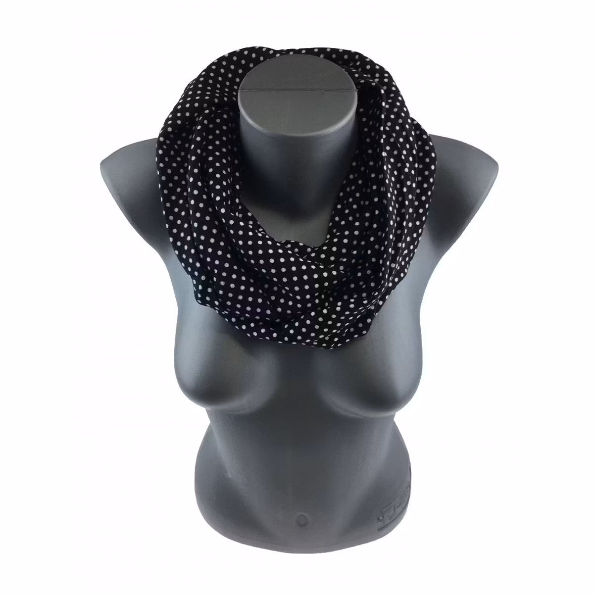Denna snood i prickigt mönster är ett måste för din garderob! Den är tillverkad av 100% polyester, vilket gör den både mjuk och lätt. Det ger ett bekvämt och stilrent intryck som passar både till vardags och till fest. Snooden är enkel att dra över huvudet och har en lös passform som ger ett avslappnat utseende. Den är perfekt att bära under kalla vinterdagar och håller dig varm och bekväm. Den kan bäras både med en tjock tröja och med en tunnare jacka för att skapa olika stilar. Denna prickiga snood är ett måste för att få till en modern och trendig look!