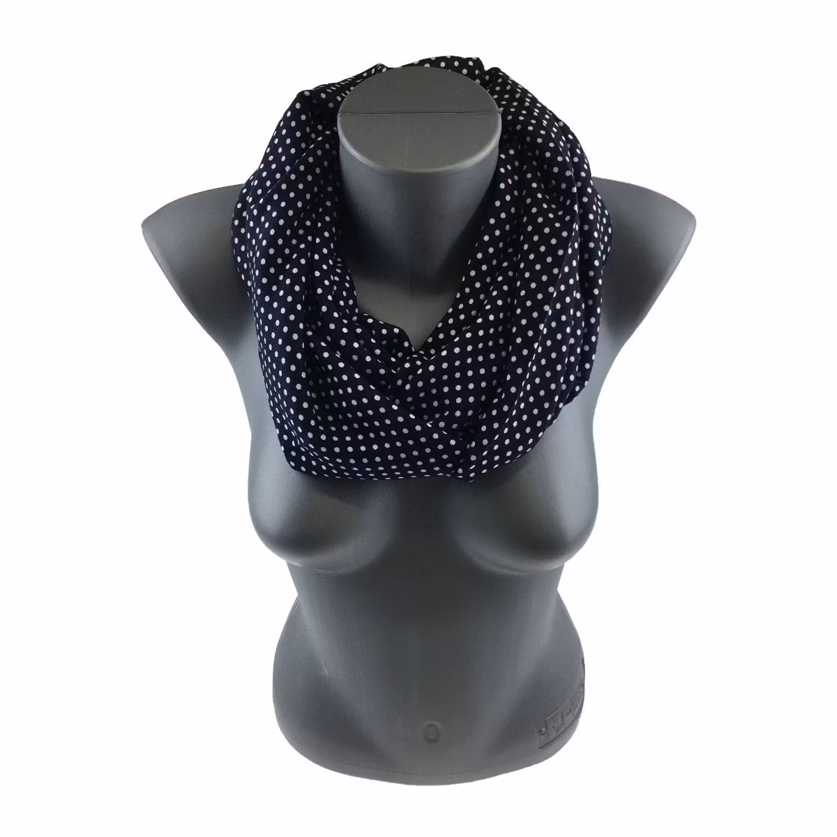 Denna snood i prickigt mönster är ett måste för din garderob! Den är tillverkad av 100% polyester, vilket gör den både mjuk och lätt. Det ger ett bekvämt och stilrent intryck som passar både till vardags och till fest. Snooden är enkel att dra över huvudet och har en lös passform som ger ett avslappnat utseende. Den är perfekt att bära under kalla vinterdagar och håller dig varm och bekväm. Den kan bäras både med en tjock tröja och med en tunnare jacka för att skapa olika stilar. Denna prickiga snood är ett måste för att få till en modern och trendig look!