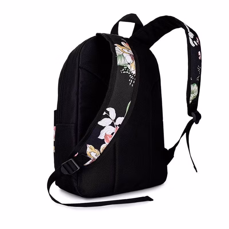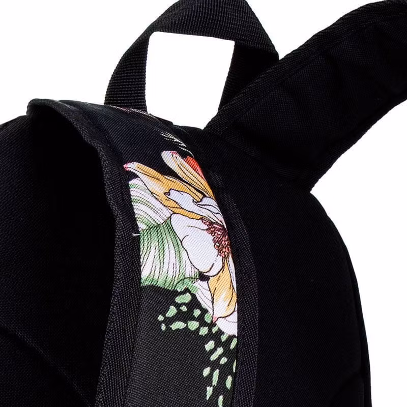 Denna ryggsäck med enkla linjer gjord av högkvalitativ nylon och polyester har en vacker blommig yta. Anmärkningsvärt är det fantastiska trycket som inte kommer att försvinna, så det kommer att tjäna dig väldigt länge! Ryggsäcken är mycket rymlig och samtidigt extremt lätt.